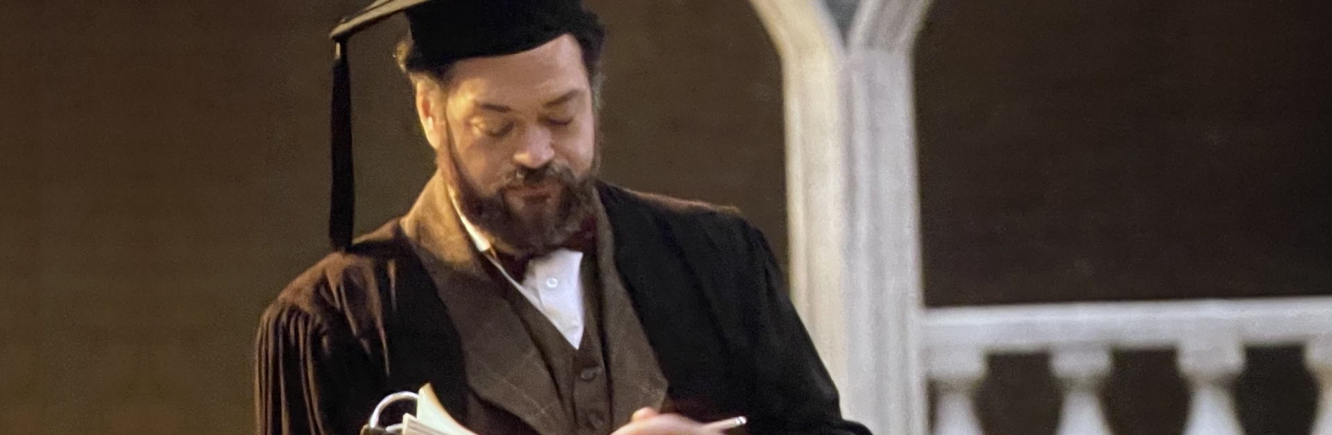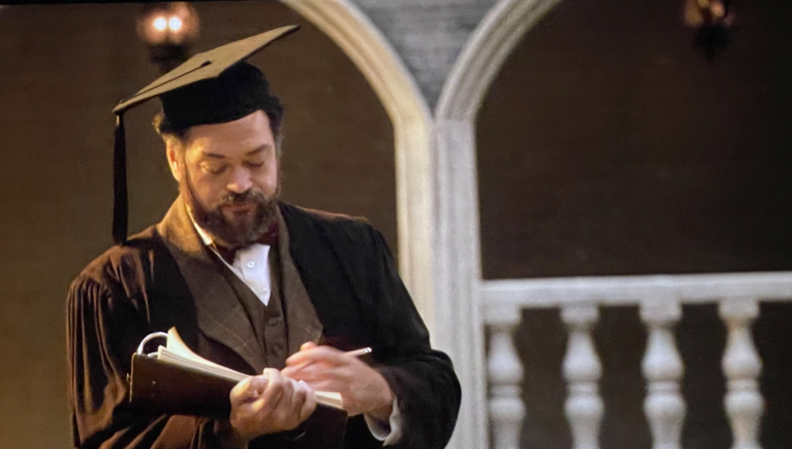 Hilton’s masterpiece is largely a series of vignettes where few characters, Chips and Kathie aside, appear or are mentioned in more than one scene. Opera and the spoken stage tend to work best when we follow a few characters over time. Thus Doctor Merrivale, who is found only in the opening scene of the book, becomes the narrator who guides us through the opera. Likewise, Kathie reappears in flashbacks long after her early death in childbirth.