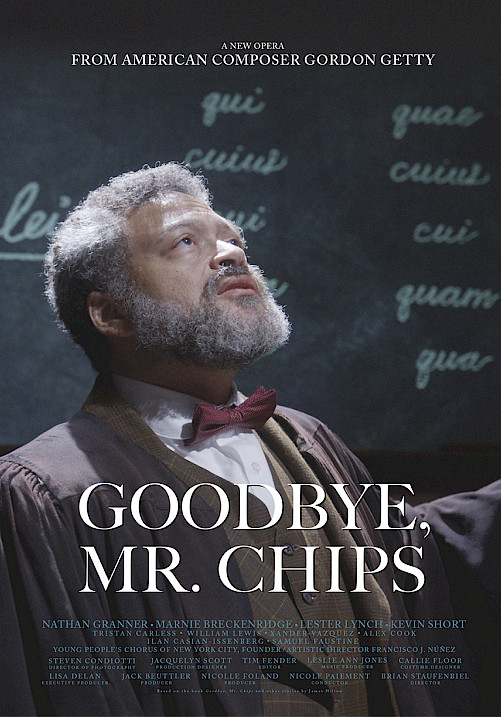The film stars Nathan Granner in the titular role of Mr. Chips, Marnie Breckenridge singing Kathie and Linford, Lester Lynch as Merrivale, and Kevin Short as Ralston and Rivers. The orchestra is conducted by Nicole Paiement. Members of The Young People’s Chorus of New York City, conducted by Founder/Artistic Director Francisco J. Núñez, represent the boarding school’s students.