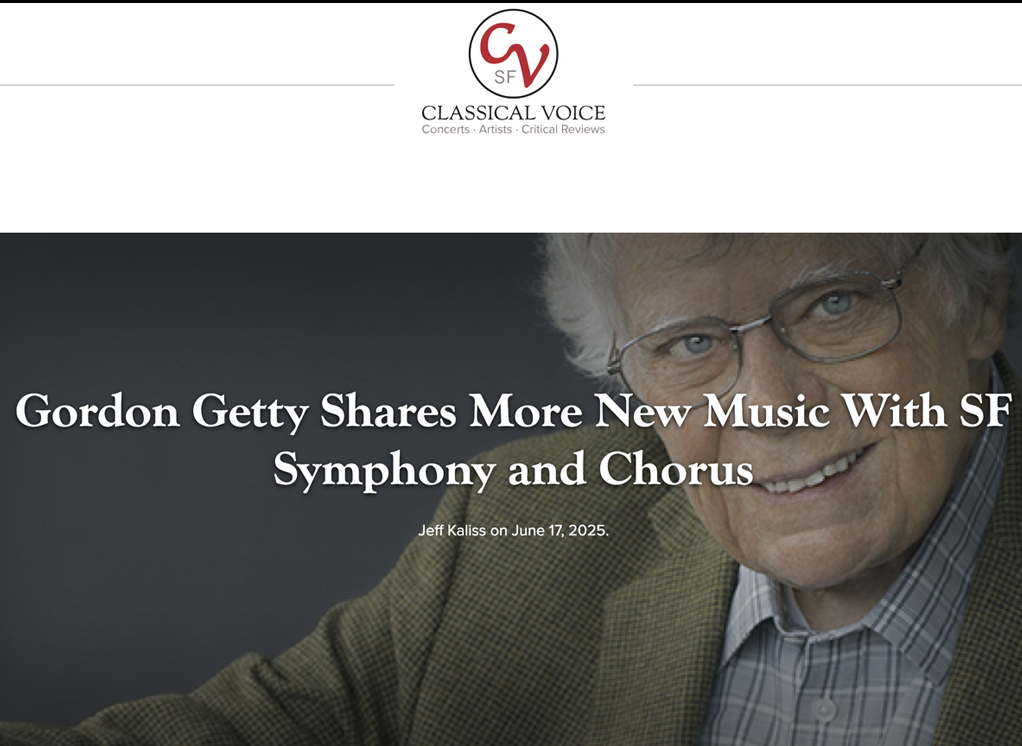 San Francisco Classical Voice publishes an interview by Jeff Kaliss of Gordon Getty discussing the choral premieres with the San Francisco Symphony and Chorus.
